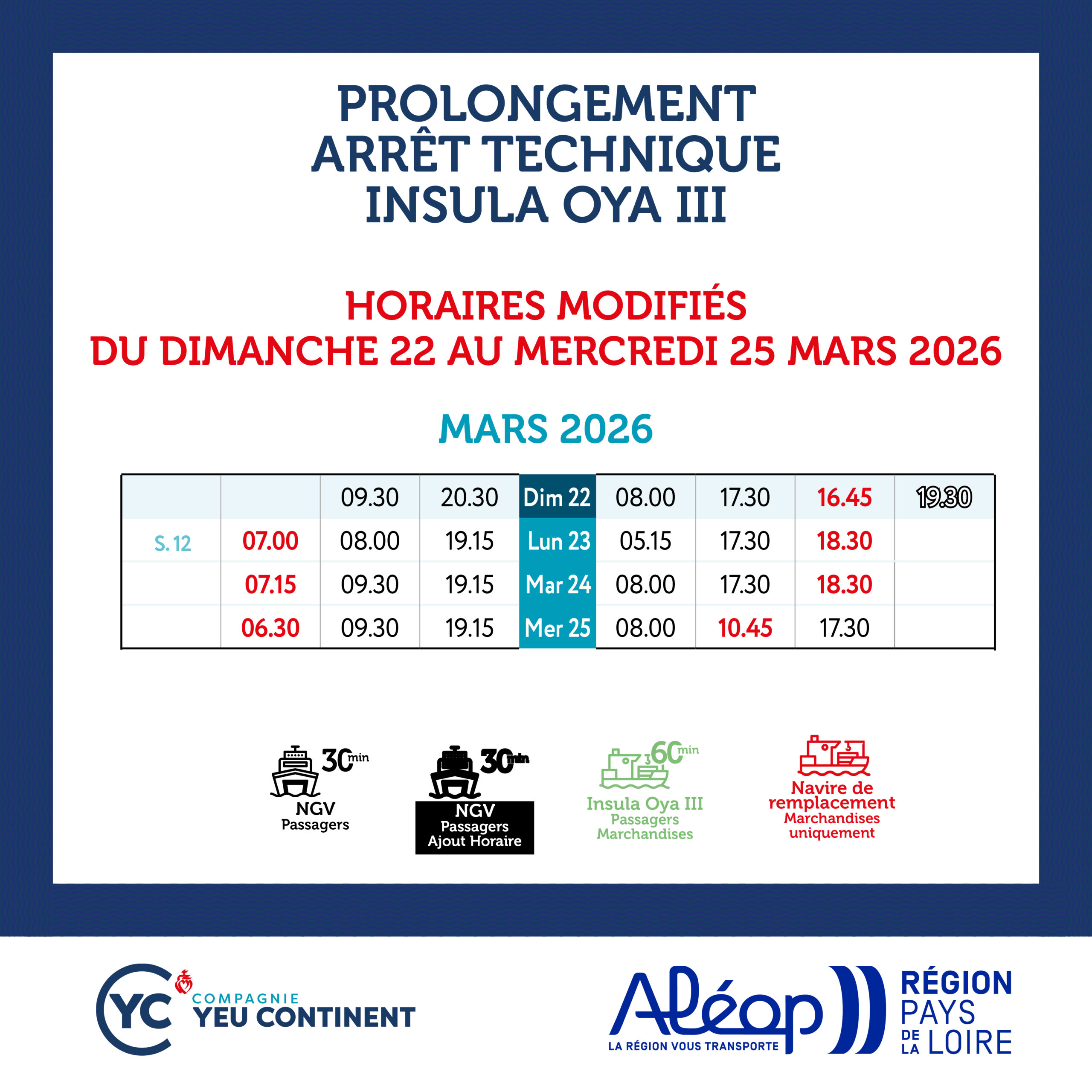 Initialement jusqu’au samedi 21 mars 2026, des interventions non prévues nous obligent à annoncer une prolongation de l’arrêt technique de l’Insula Oya III (estimée à environ une semaine).